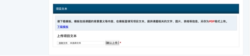 项目文本: 请点击“下载模板”,按要求填写完成后转换为PDF格式,通过“上传项目文本”进行上传。