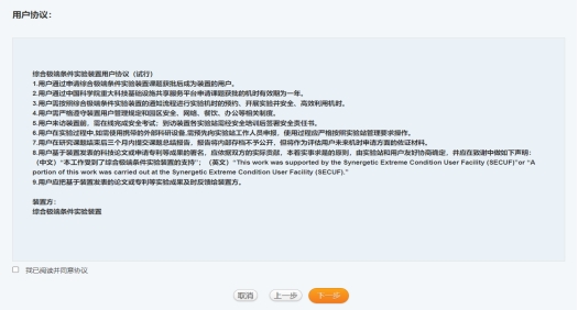④选择设施-综合极端条件实验装置SECUF,点击下一步。